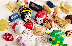 チョコレート カファレルの代名詞でもあるジャンドゥーヤはじめ、てんとう虫やキノコなど、愛らしくカラフルなホイルに包まれたイタリア直輸入のチョコレートたち。毎年発表される新しいデザインには世界中のファンから熱い視線が注がれます。 |
